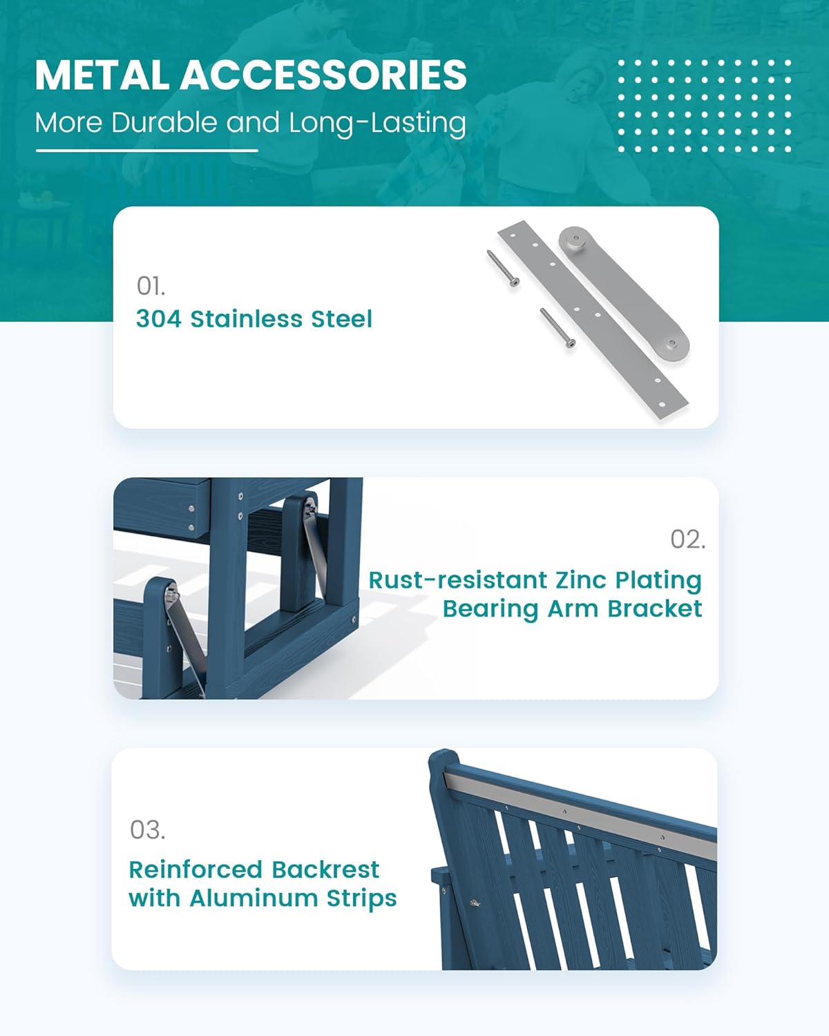 - [Outdoor Comfort] SERWALL outdoor swing chairs feature a unique wood-like texture, adding a touch of natural beauty to your space. Enjoy the fresh air and sunshine in comfort with this outdoor glider bench, create your outdoor relaxation paradise.