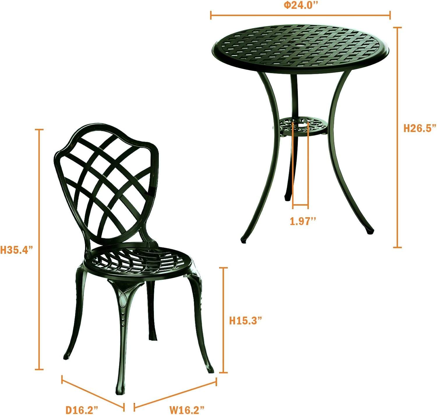- 【Durable Cast Aluminum】Made of anti-rust, weather-resistant cast aluminum, making bistro set perfect for long-term outdoor use in any climate