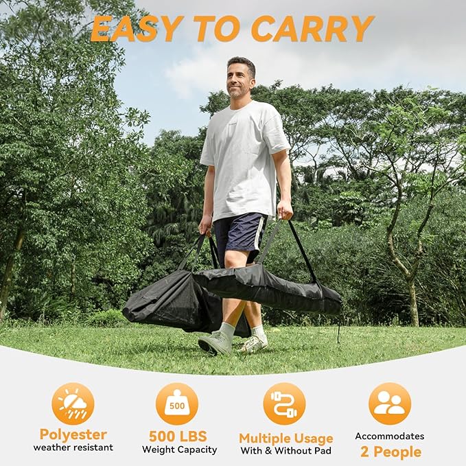 - 【With Carrying Bag & Adjustable Height】:This 2-person hammock with stand features a height-adjustable steel chain for the perfect fit. Designed with portability in mind, it comes with a convenient carry bag—take it anywhere, anytime, and relax on the go.