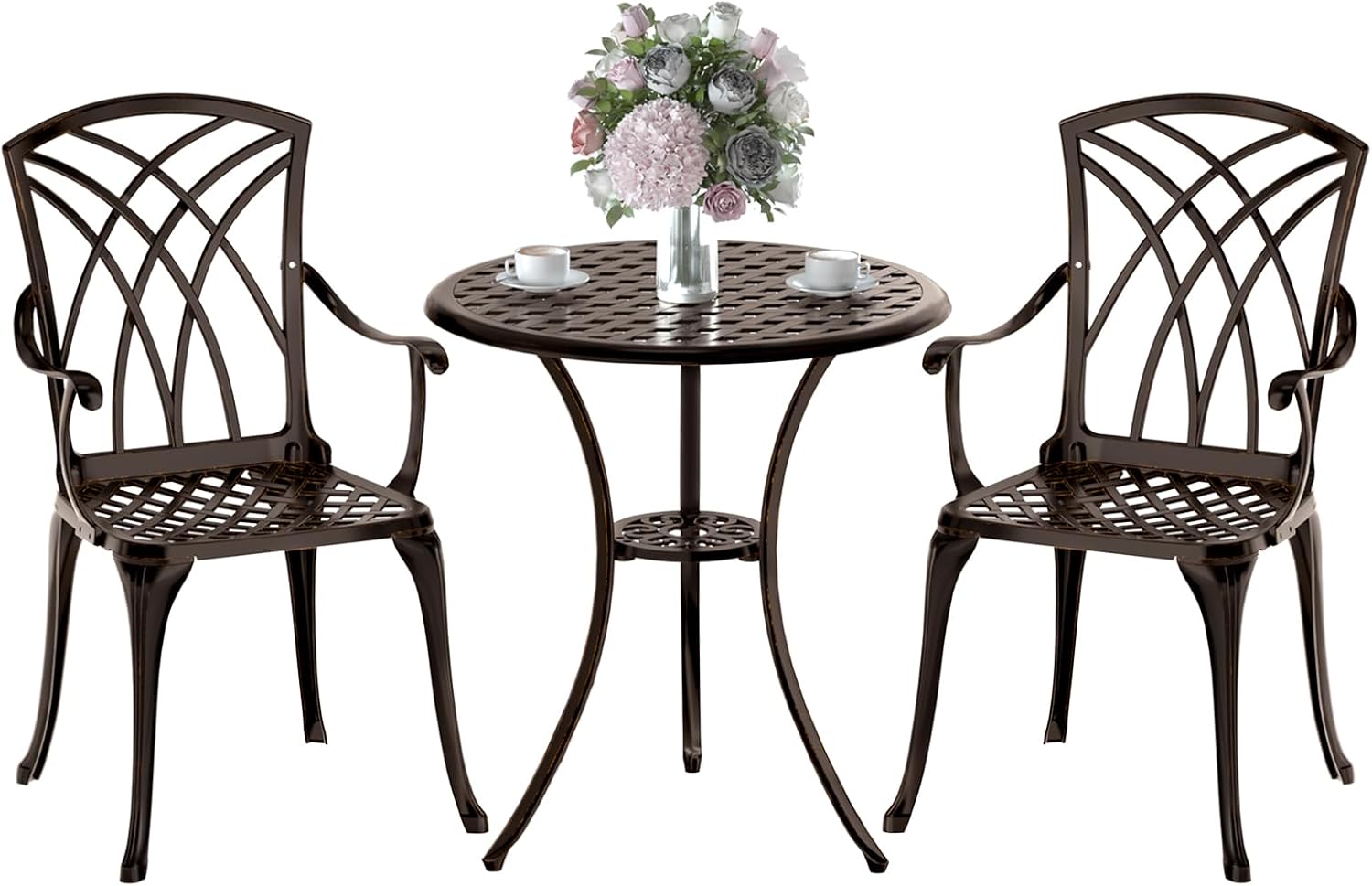 - 【Durable Cast Aluminum】Made of anti-rust, weather-resistant cast aluminum, making bistro set perfect for long-term outdoor use in any climate