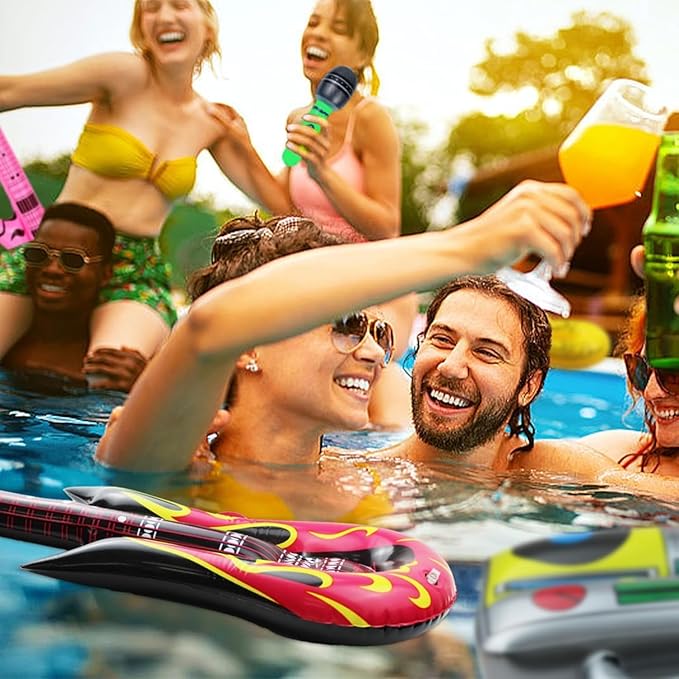 - Widely used: These inflatable instruments are suitable for 80s themed parties, pool parties, carnival parties, birthday parties, carnival parties, kindergarten events, family gatherings, rock star dress days, dance performances; They can add laughter to your holiday activities, bring more beautiful memories to your activities, and can also be used to decorate the corners of various rooms in the home, making them look more warm