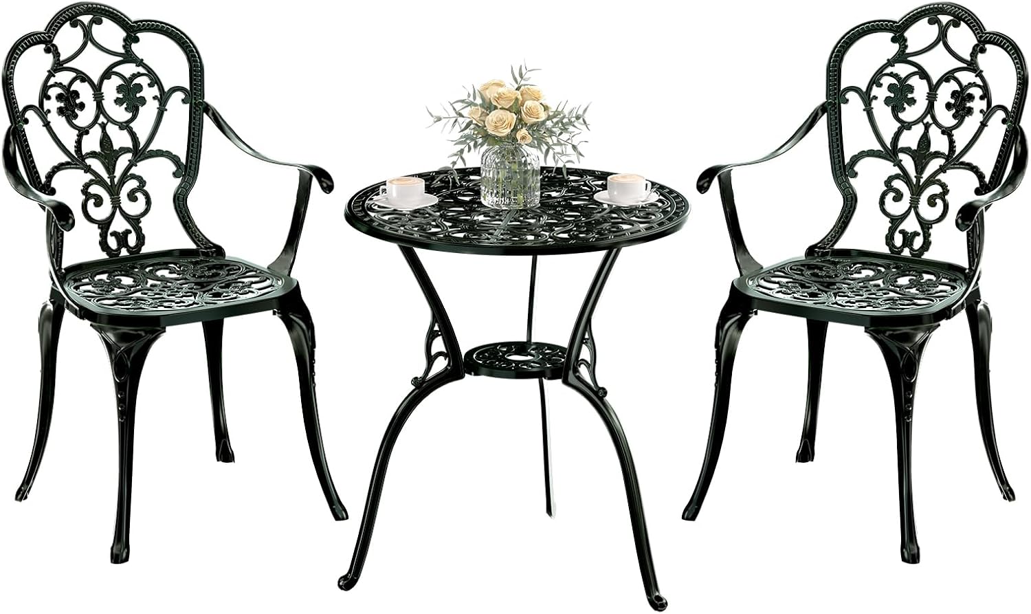 - 【Durable Cast Aluminum】Made of anti-rust, weather-resistant cast aluminum, making bistro set perfect for long-term outdoor use in any climate