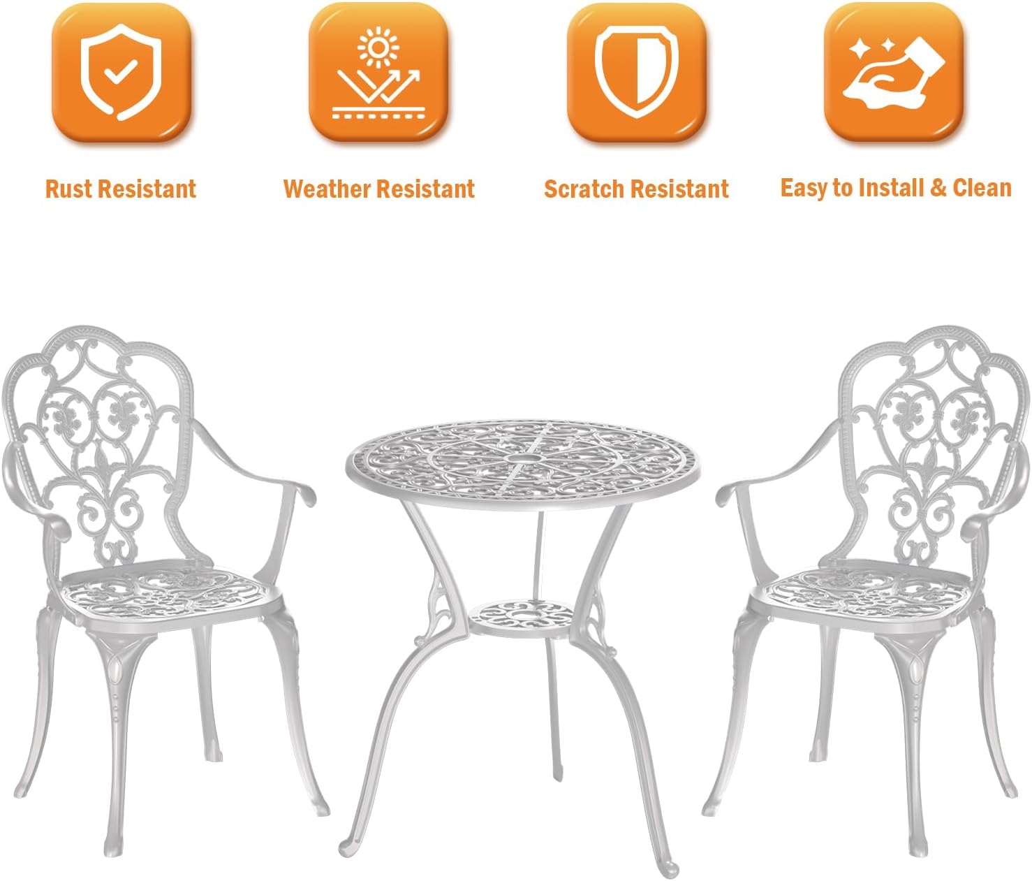 - 【Durable Cast Aluminum】Made of anti-rust, weather-resistant cast aluminum, making bistro set perfect for long-term outdoor use in any climate