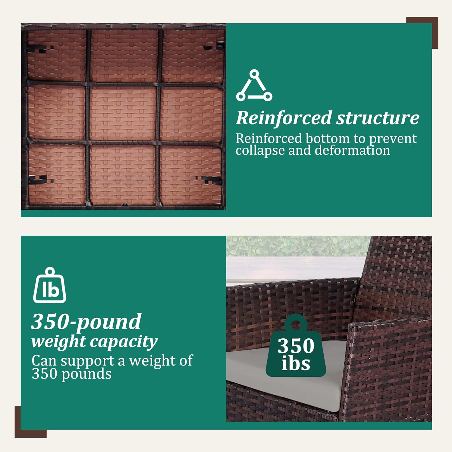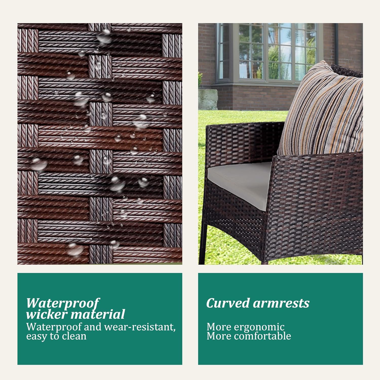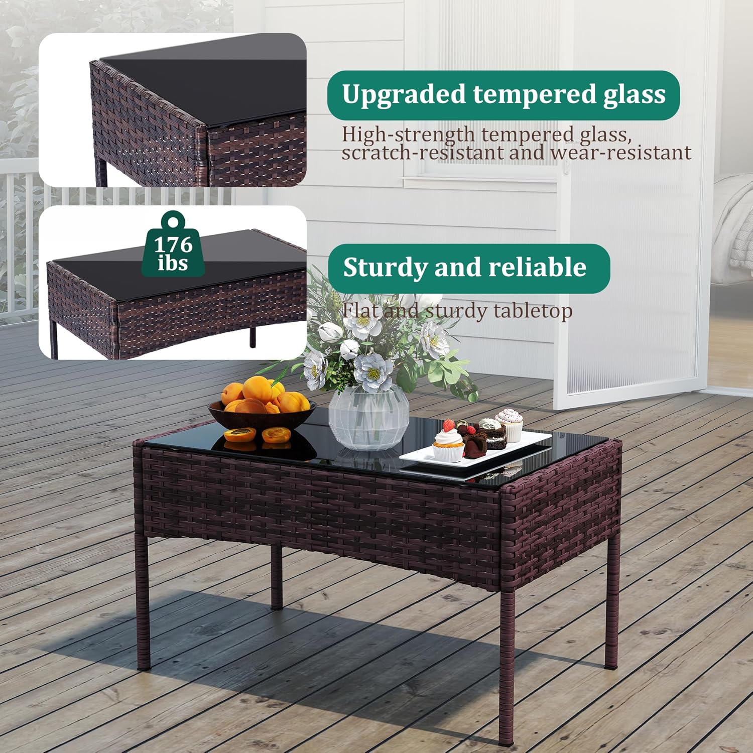 - 【Complete 4-Piece Set】 Includes 7 main furniture (1 Coffee Table + 3 Chairs + 3 Seat Cushions). Everything needed for instant outdoor living