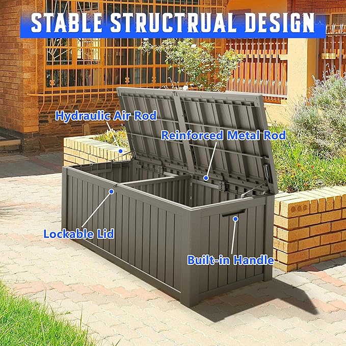 - 👍 Secure and Waterproof Protection: This lockable outdoor storage box (lock not included) offers excellent security for your belongings. Its waterproof design shields items from moisture, ensuring they stay dry and safe in any outdoor setting. Versatile and reliable, this deck box can also serve as a package delivery box by your front door.