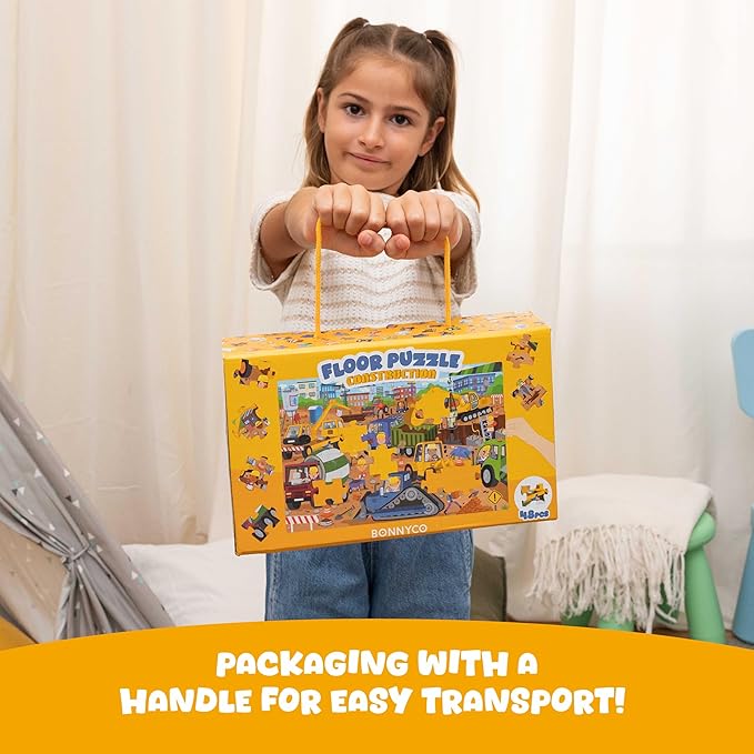 BONNYCO Giant Floor Puzzles for Kids of Construction Site with 48 Large Pieces. Jumbo Puzzle 36.2 x 24.4 in, Gifts for Boys and Girls, Educational Kids Toys Ages 2-8