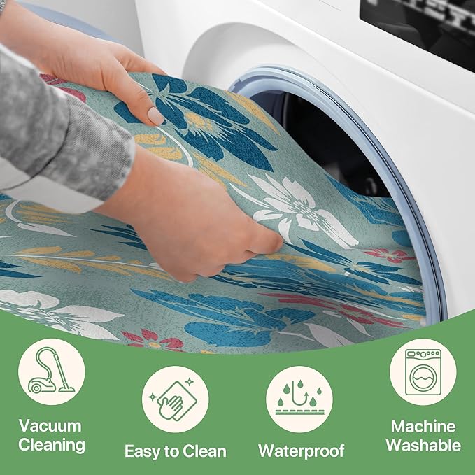 GENIMO Indoor Outdoor Area Rug 8' X 10' Waterproof, Washable Patio Rug Non Shedding, Easy Cleaning Floral Outdoor Carpet for Living Room, Bedroom, Dining Room, Balcony, Backyard, Deck, RV, Blue Grey