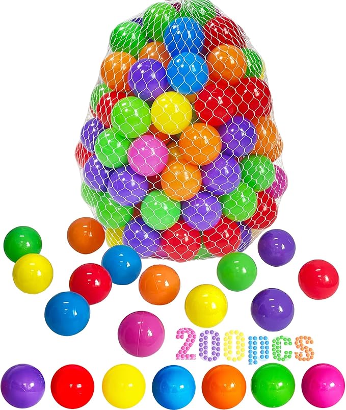 - NON-TOXIC & ENVIRONMENTAL & CHILD SAFE - Pack of 200 pcs toy Balls with rainbow 7 colors. Made of food grade PE material with phthalate free, BPA free, lead free and non-PVC plastic, non-toxic, no smell. Each pit ball is thickened, more durable, and more brightly colored.