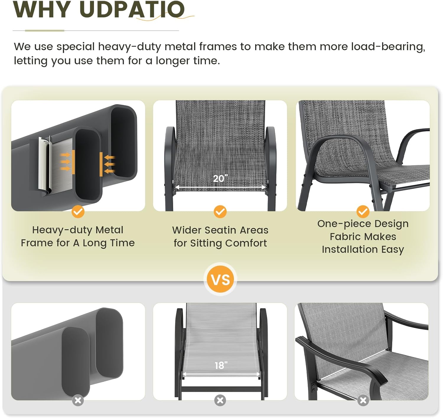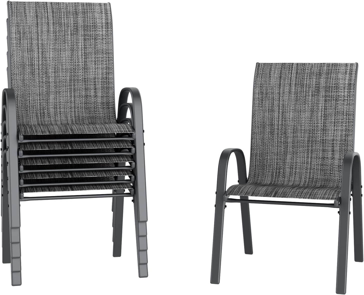 UDPATIO Patio Chairs Set of 6, Stackable Outdoor Dining Chairs with High Back, Breathable Textilene Fabric Outdoor Chair All Weather, 350LBS Capacity for Garden, Backyard (Dark Grey)