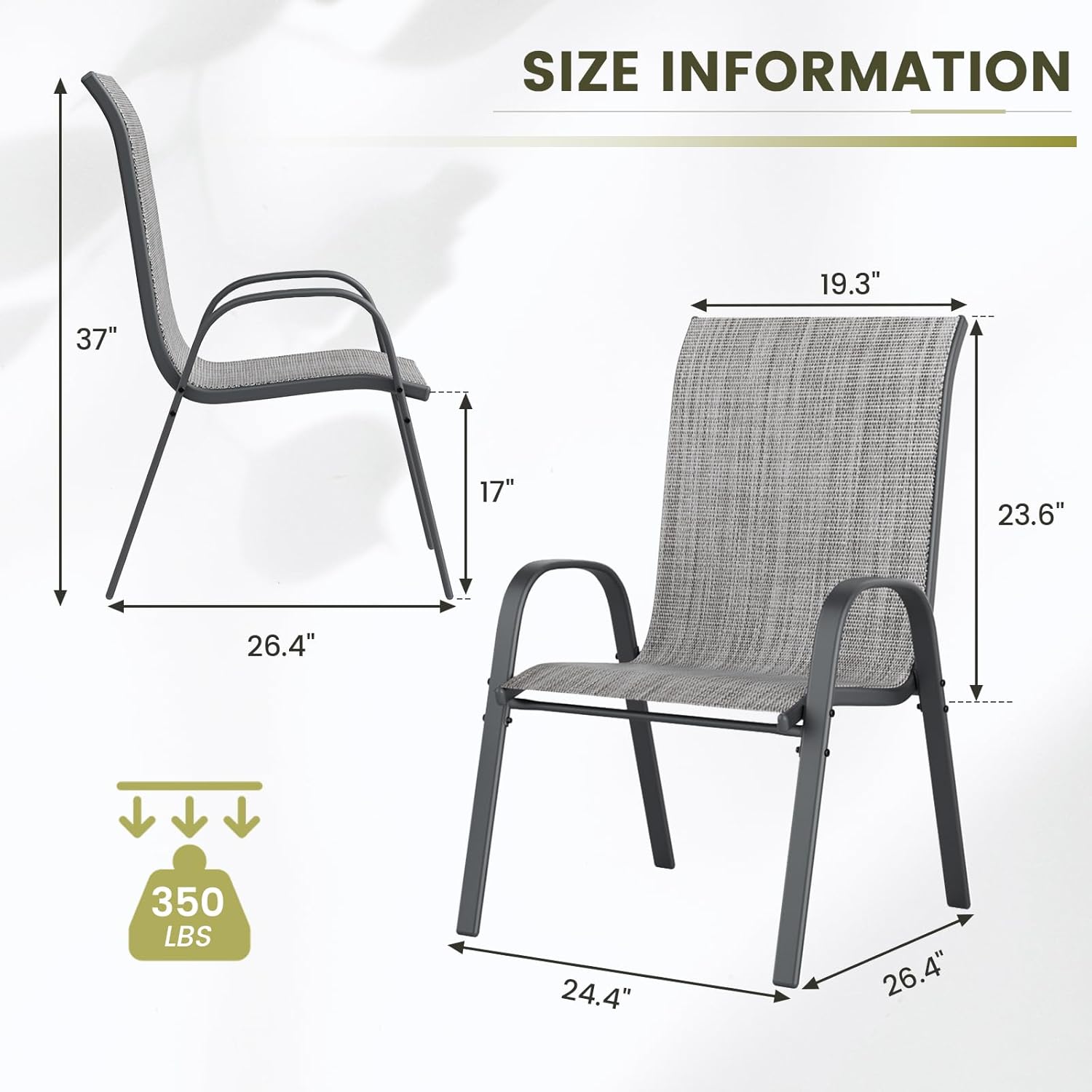 - 【OUTDOOR STACKABLE DINING CHAIRS】The stackable design allows you to both easily stack these patio chairs for compact storage, saving valuable space in your home or outdoor space. Lightweight design allows you to easily move these outdoor chairs and place them wherever you need them to be
