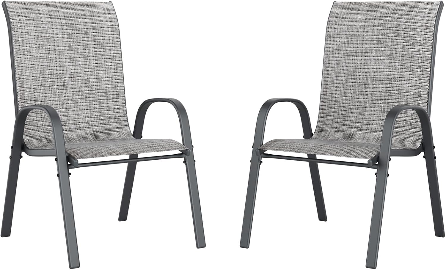 UDPATIO Patio Chairs Set of 2, Stackable Outdoor Dining Chairs with High Back, Breathable Textilene Fabric Outdoor Chair All Weather, 350LBS Capacity for Garden, Backyard (Light Grey)