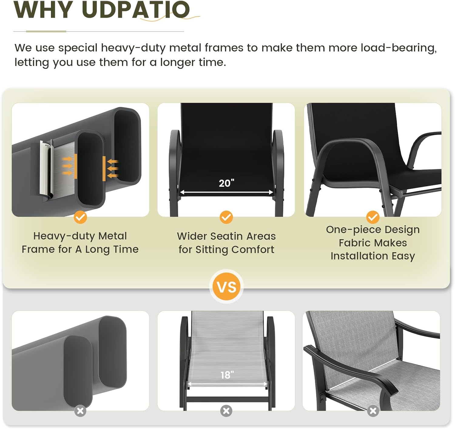 - 【STURDY & DURABLE FRAMES】Compared to traditional dining chairs set of 4, our patio table chairs are more load-bearing, with U-shaped sides to enhance stability and support, and can withstand up to 350 pounds of pressure. The frame is powder-coated to effectively prevent rust and ensure excellent weather resistance