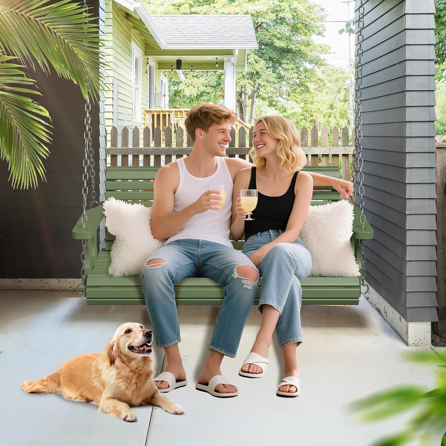 - Ergonomic Design - Our wooden porch swing curves in the knee area to provide you the best sitting experience. It will never hurt your knees or backs. Just sit on it then enjoy your leisure time