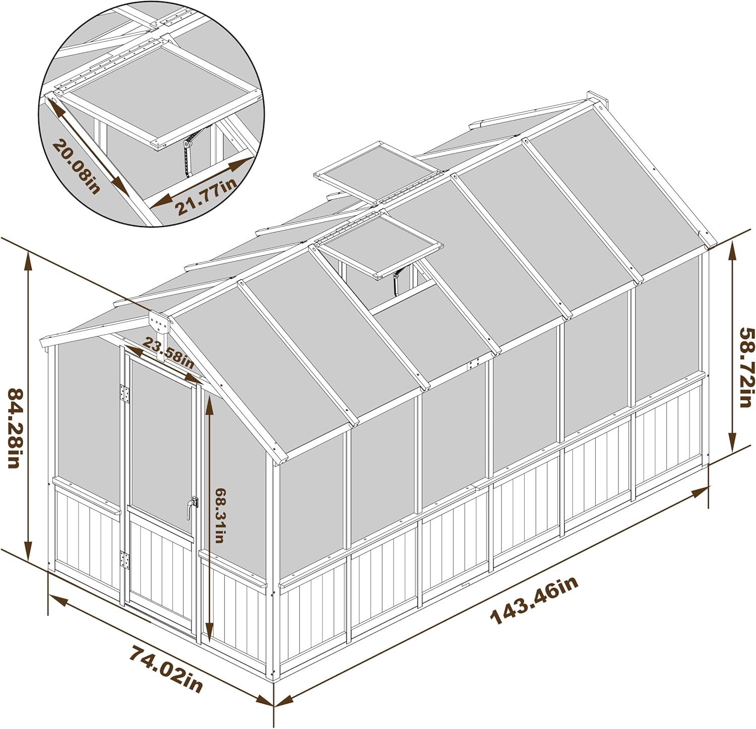 - Effortless Air Circulation - The wood greenhouse features an adjustable vent, providing your plants with optimal growth conditions by regulating temperature and airflow. Our multi layer polycarbonate panels with diffuse patterns, it ensures sufficient light in every corner of the greenhouse. This feature is essential for promoting the health of your garden