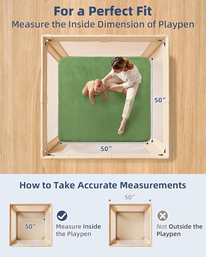 - Soft & Safe Play Area: The back of the play mat features a non-slip design to ensure the mat stays securely in place. This allows your baby to play and grow in a completely safe and comfortable environment. The crawling mat measures 50x50x1.2 inches, making it perfect for a 50x50 baby playpen. The thickened mat protects children during playtime, encouraging them to explore boldly without fear of falls and bumps. The simple design perfectly complements any style of playroom.