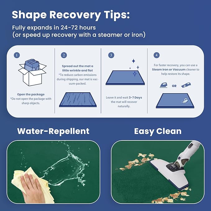 - 【Water-Resistant & Easy to Clean】Designed for convenience, this crawling mat features a water-repellent and stain-resistant surface. A quick vacuum removes dry debris, while a damp cloth or baby wipes handle stickier messes, ensuring effortless maintenance.