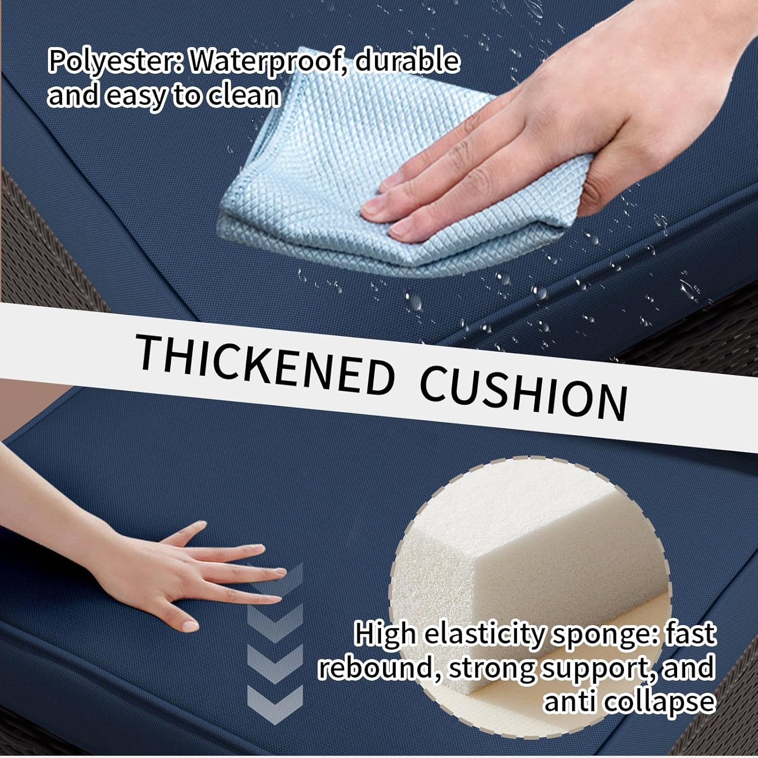 - Comfortable & Easy-Clean Cushions: thick and highly elastic sponge cushions and soft polyester covers, comfortable and relaxing to sit on. The removable cushions are machine-washable, easy to maintain.