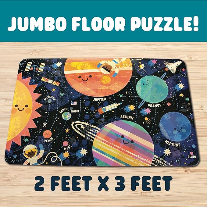 Chuckle & Roar Educational 50 PC Floor Puzzle Giant Space Glow-in-The-Dark